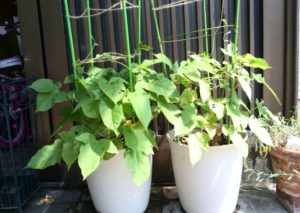 わが家の玄関に朝顔を緑のカーテンにして育てていますが、
