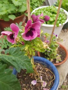 今年の4月上旬、娘と二人でパンジーの株元とプランターの裏に