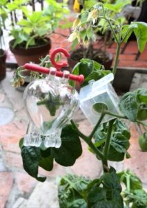 左下は、しばらくお世話できないときのために、ペットボトルをさして自動給水にした形です。普段は、このペットボトルは外しておきます。