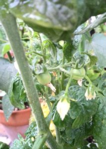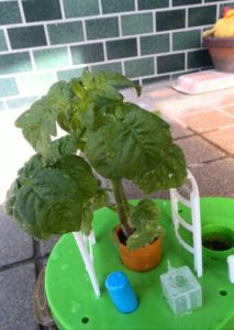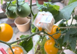 7月16日、四角いケースのほうは、ケースいっぱいに黄色いトマトが成長しました。いよいよ収穫です。