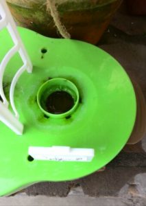 水やりあな というのは、左下の写真の、コラショのペットボトルカバーをかぶせたペットボトルを外すと、そこに丸い穴があいていて、普段はその穴に水を注いで水やりするのです。