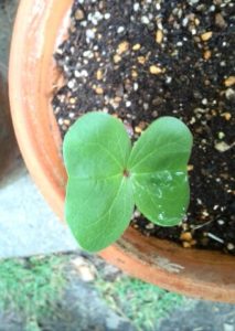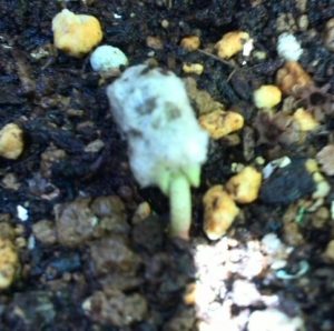 夜中に活動するナメクジに食べられてしまわないように、暗くなってから懐中電灯で照らしてナメクジがいたら退治します。今年は双葉が3つくらいナメクジに食べられてしまいました。ナメクジの被害さえ避けれれば、あとはすくすく成長します。